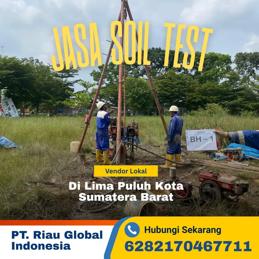 Jasa soil test di Lima Puluh Kota untuk proyek rumah, ruko, jalan, dan bangunan skala besar. Melayani sondir test, soil test boring, uji tanah sondir, dan jasa soil investigation dengan harga terjangkau. Hubungi 082170467711.
